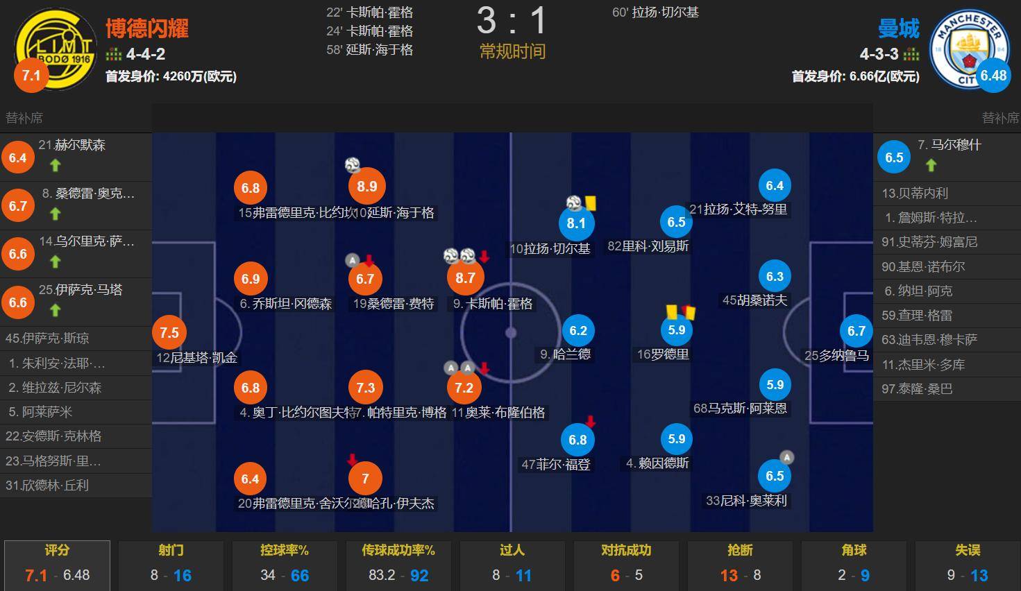 ตลอดการแข่งขัน แมนเชสเตอร์ ซิตี้ครองบอลได้ถึง 66% แต่เป็นสไตล์การเล่นครองบอลแบบหลอกๆ ที่เป็นเอกลักษณ์ของพวกเขา ซิตี้มีโอกาสยิงถึง 16 ครั้ง ซึ่งเป็นสองเท่าของโบโด/กลิมท์ที่ยิงได้ 8 ครั้ง แต่ทั้งสองทีมยิงตรงกรอบเพียง 5 ครั้งเท่านั้นทีมแมนเชสเตอร์ ซิตี้ ของเป๊ป กวาร์ดิโอลา ตอนนี้ขาดผู้เล่นที่ผ่านสนามรบมาอย่างแท้จริง ด้วยการจากไปของอัลวาเรซทำให้พวกเขาขาดการยิงระยะไกล และฮาแลนด์ขาดความสามารถในการเล่นหลังประตูและลูกกลางอากาศที่จำเป็นสำหรับการต่อสู้ที่ยากลำบาก ทำให้ซิตี้มาถึงจุดที่การสร้างทีมใหม่เป็นสิ่งจำเป็น ด้วยสภาพที่ขาดความสดใสของฮาแลนด์อย่างต่อเนื่อง พวกเขาอาจจะเล่นโดยไม่มีกองหน้าเลยก็ได้เมื่อการแข่งขันของซิตี้ไม่เป็นไปตามแผน กวาร์ดิโอล่ามักจะลืมทำการเปลี่ยนตัวผู้เล่น โดยเปลี่ยนเพียงคนเดียวในนัดนี้ แม้จะมีสิทธิ์เปลี่ยนตัวถึงห้าคนแต่ก็ไม่ได้ใช้เลย ความมหัศจรรย์ของกวาร์ดิโอล่าได้จางหายไป ถึงเวลาแล้วที่จะปล่อยทีมบลูมูนไป...