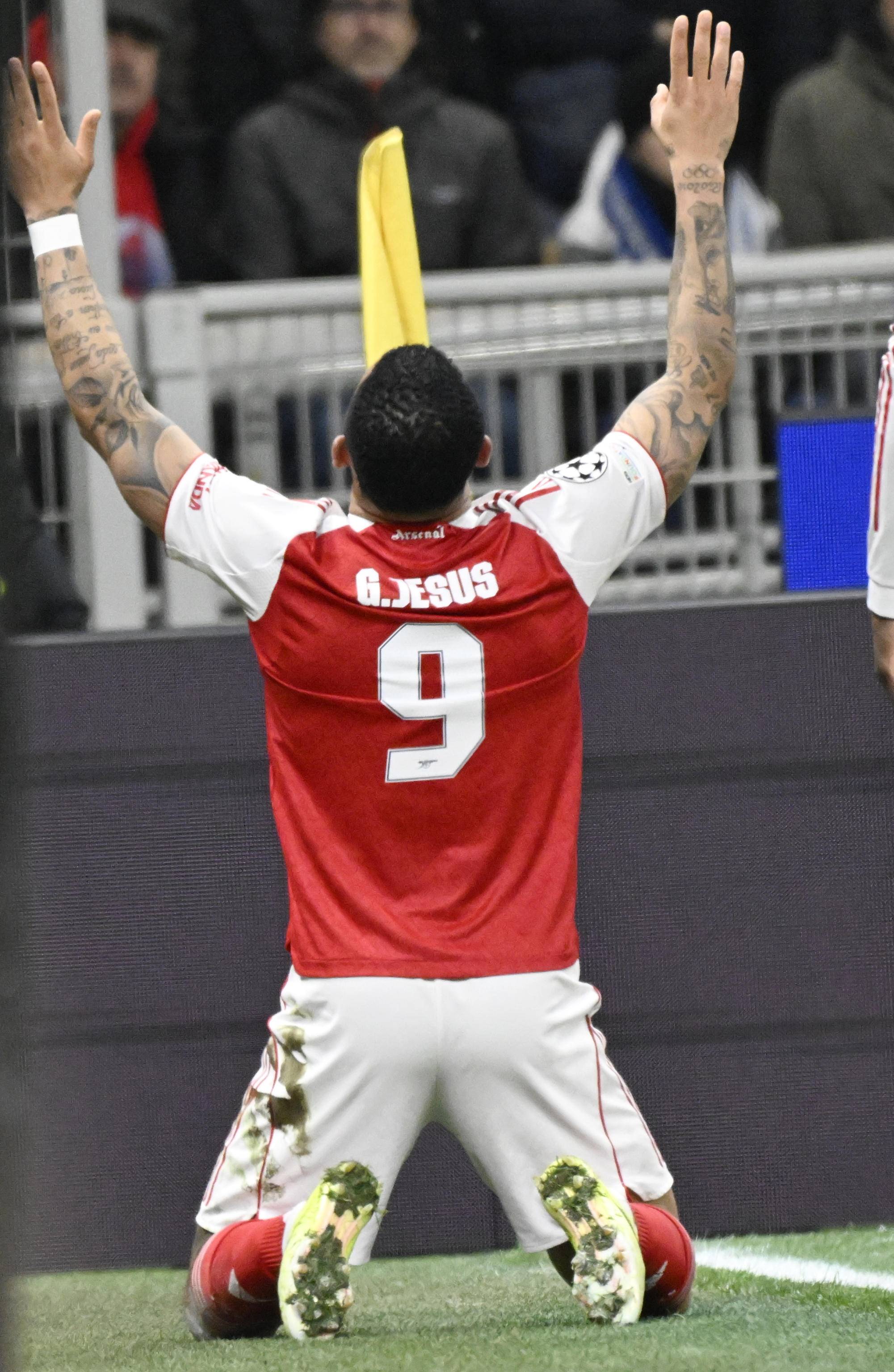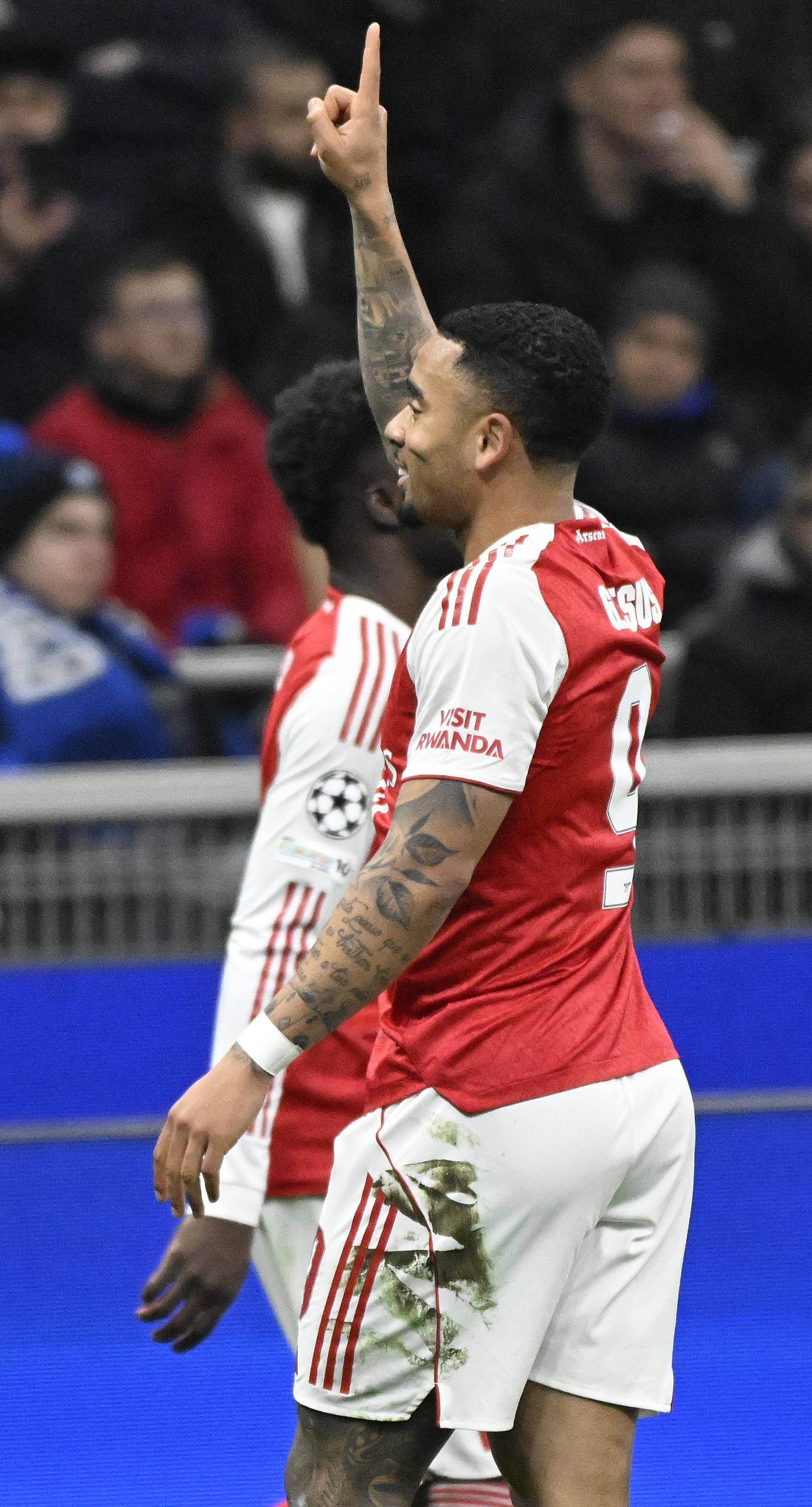 เมื่อวันที่ 20 มกราคม กาเบรียล เฆซุส นักเตะของอาร์เซนอล ฉลองการทำประตูได้สำเร็จ ซินหัว/อีพีเอ
