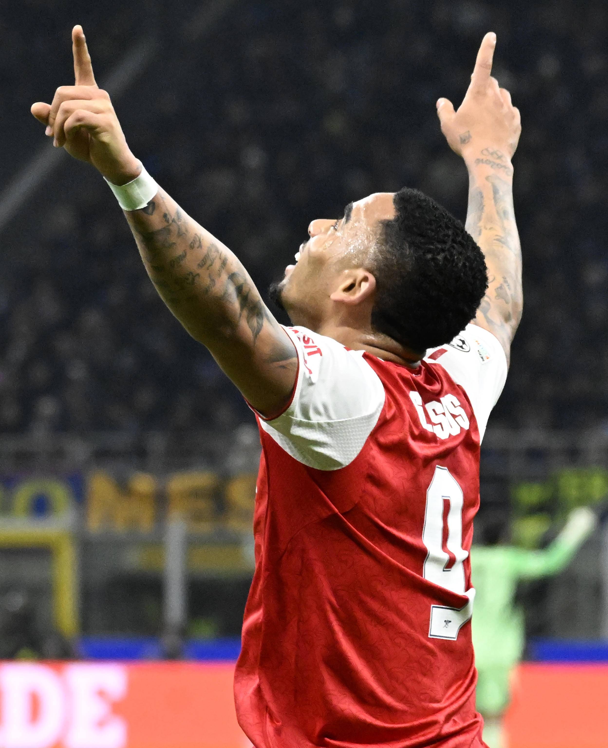 เมื่อวันที่ 20 มกราคม อีวาน ซูชิช นักเตะของอินเตอร์ มิลาน ฉลองการทำประตูได้สำเร็จ ซินหัว/EPA