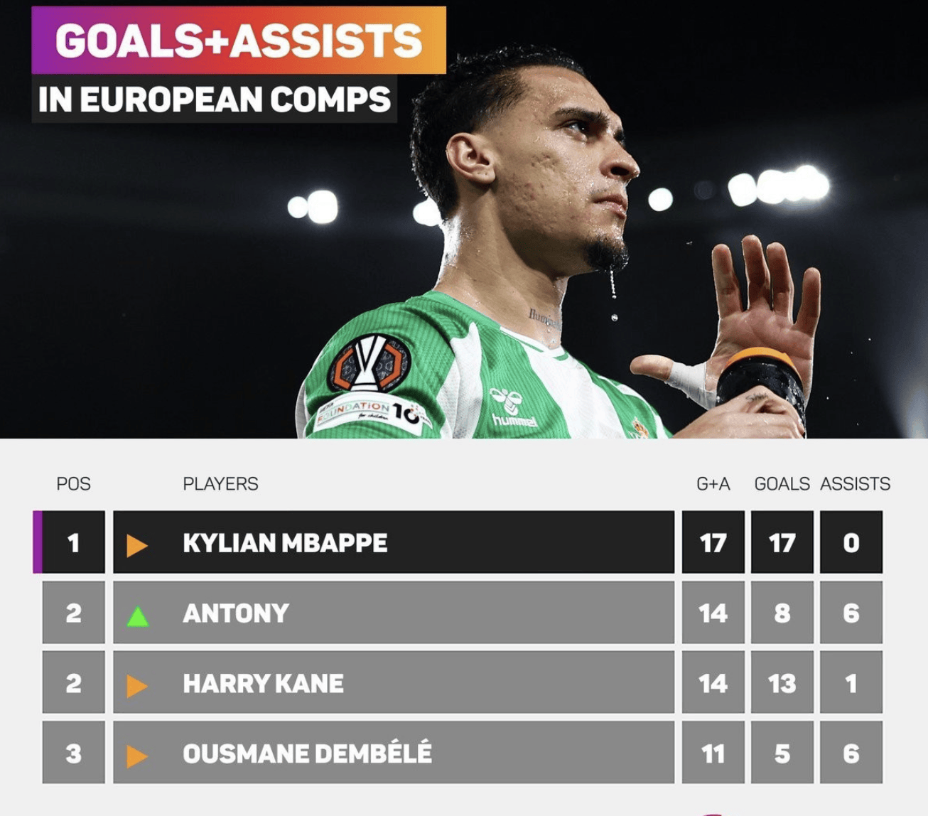 นับตั้งแต่เข้าร่วมทีมเบติสในเดือนมกราคม 2025 แอนโธนี่มีส่วนร่วมโดยตรงกับ 14 ประตูในการแข่งขันระดับยุโรป (8 ประตู, 6 แอสซิสต์) ตลอดระยะเวลาหนึ่งปี เป็นรองเพียง คีเลียน เอ็มบัปเป้ (17 ประตู) เท่านั้นในยุโรป ปัจจุบันมูลค่าตลาดของแอนโธนี่อยู่ที่ 30 ล้านยูโร