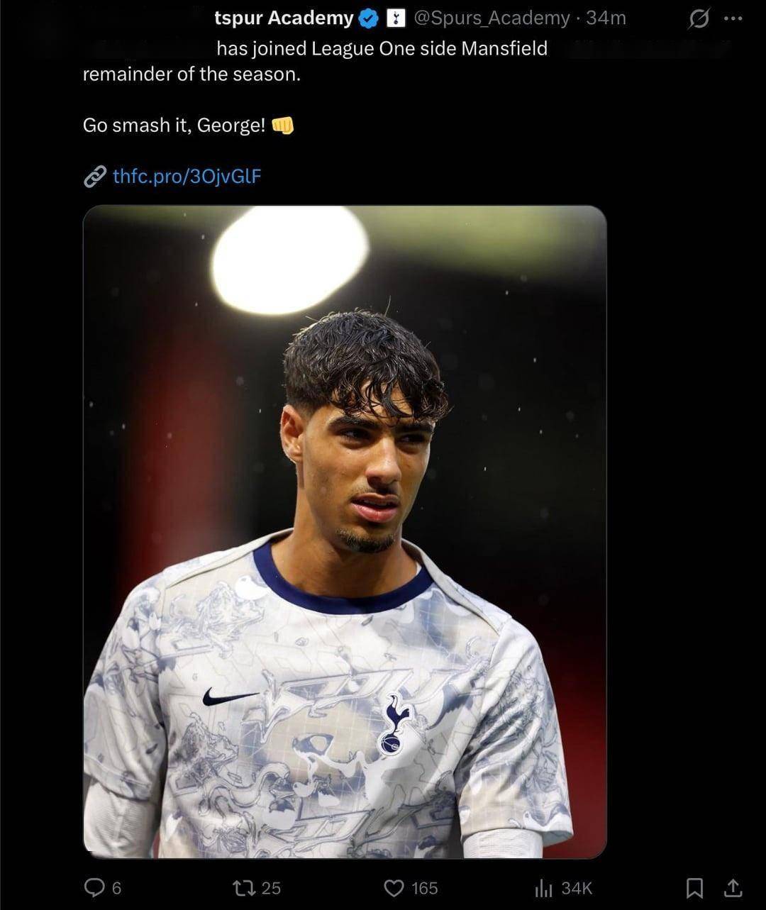 จอมทัพวัย 20 ปีของท็อตแน่ม ฮ็อตสเปอร์ ย้ายไปร่วมทีมแมนส์ฟิลด์ ทาวน์ ด้วยสัญญายืมตัว กลับมาเริ่มต้นชีวิตใหม่หลังบาดเจ็บ_จอร์จ แอ็บบอตต์_ลีกวัน_ฤดูกาลนี้