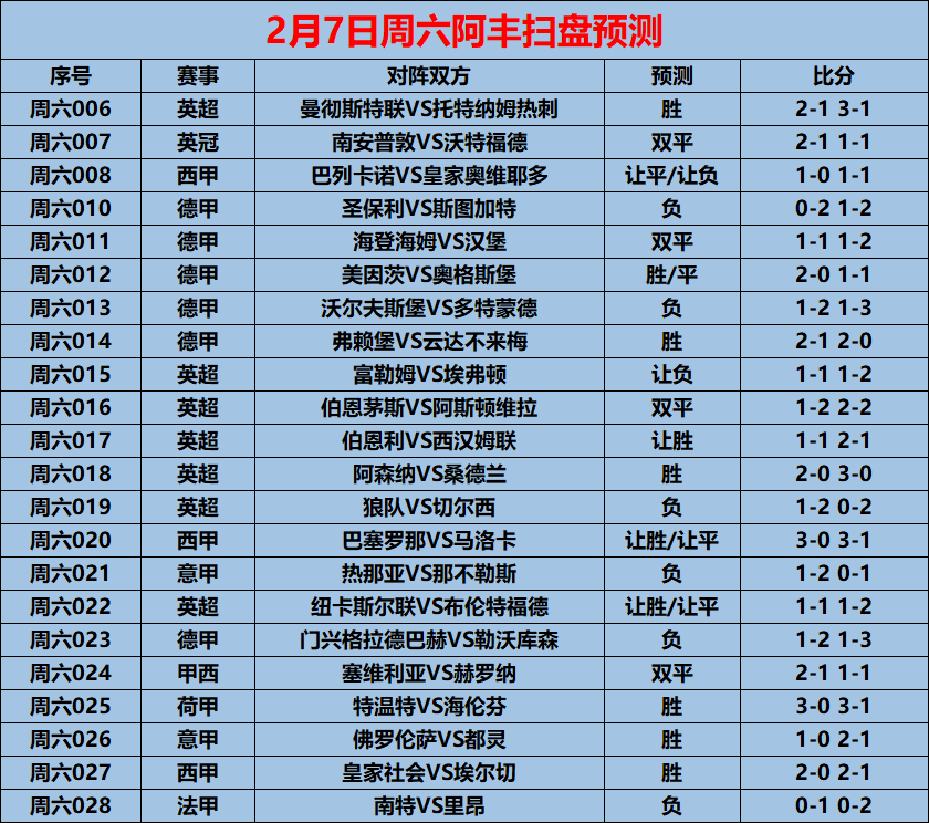 2/7 พรีวิวการแข่งขันวันเสาร์: พรีเมียร์ลีก แมนเชสเตอร์ ยูไนเต็ด พบ ท็อตแน่ม ฮ็อทสเปอร์ (รวม 22 การทำนายผลการแข่งขัน)_ฟูแล่ม_เอฟเวอร์ตัน_แชมเปี้ยนส์ลีก