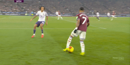 ในขั้นตอนนี้ ปัญหาที่เคยถูกปกปิดโดยตารางการแข่งขันรายสัปดาห์เริ่มปรากฏให้เห็นชัดเจนขึ้น ยกตัวอย่างการโจมตีครั้งนี้: หลังจากที่ทีมสามารถสร้างจังหวะขึ้นไปได้บ้าง การเคลื่อนไหวก็หยุดชะงักลงที่ฝั่งที่อ่อนแอ ไม่ว่าจะเป็นการที่ดาลอตส่งบอลยาวเกินไปหรืออามาด ดิยัลโล่ไม่สามารถตามทัน ผลลัพธ์คือการบุกที่มีแววดีจบลงด้วยการเตะเริ่มเกมของเวสต์แฮม ยูไนเต็ด: