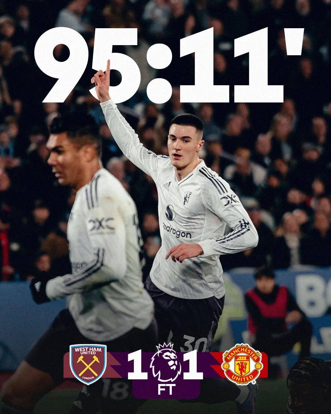 สกอร์บอร์ดค้างอยู่ที่ 1-1 ซึ่งเป็นผลการแข่งขันที่ทำให้ทั้งสองฝ่ายไม่พอใจ แม้ว่าแมนเชสเตอร์ ยูไนเต็ดจะโชคดีที่สามารถรักษาผลเสมอไว้ได้เมื่อพิจารณาจากสถานการณ์ของเกมบุคคลที่มีชื่อเสียงในโซเชียลมีเดียของแมนเชสเตอร์ยูไนเต็ด คุณ Haircut ได้ให้คำมั่นว่า "ผมจะไม่ตัดผมจนกว่ายูไนเต็ดจะชนะติดต่อกันห้าครั้ง" แต่ทีมขุนค้อนได้ปิดร้านตัดผมของเขาในเย็นวันนี้ อย่างไรก็ตาม ยังมีสิ่งที่ดี: ยูไนเต็ดยุติการแพ้สามนัดติดต่อกันในการออกไปเยือนเวสต์แฮมในพรีเมียร์ลีก และเมื่อเชลซีเสมอกับลีดส์ยูไนเต็ดในคืนเดียวกัน การแข่งขันเพื่อชิงอันดับที่สี่หรือห้า ยังไม่หมดหวังทั้งหมด