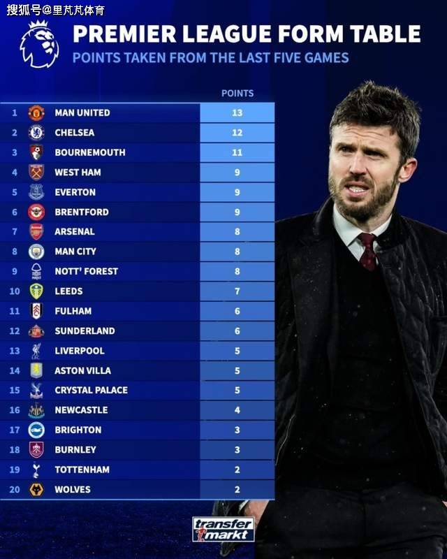 แมนเชสเตอร์ ยูไนเต็ด ยังคงรักษาฟอร์มอันยอดเยี่ยมไว้ได้ด้วยการเอาชนะท็อตแน่ม ฮ็อตสเปอร์ 2-0 ในรอบนี้ สถิติเผยให้เห็นว่าใน 5 นัดล่าสุดของพรีเมียร์ลีก ยูไนเต็ดคว้าชัยชนะได้ 4 นัดและเสมอ 1 นัด เก็บได้ 13 คะแนน ซึ่งเป็นคะแนนสูงสุดในบรรดาทุกทีมในช่วงเวลาดังกล่าว เชลซี (12 คะแนน) และบอร์นมัธ (11 คะแนน) ครองอันดับ 2 และ 3 ตามลำดับ