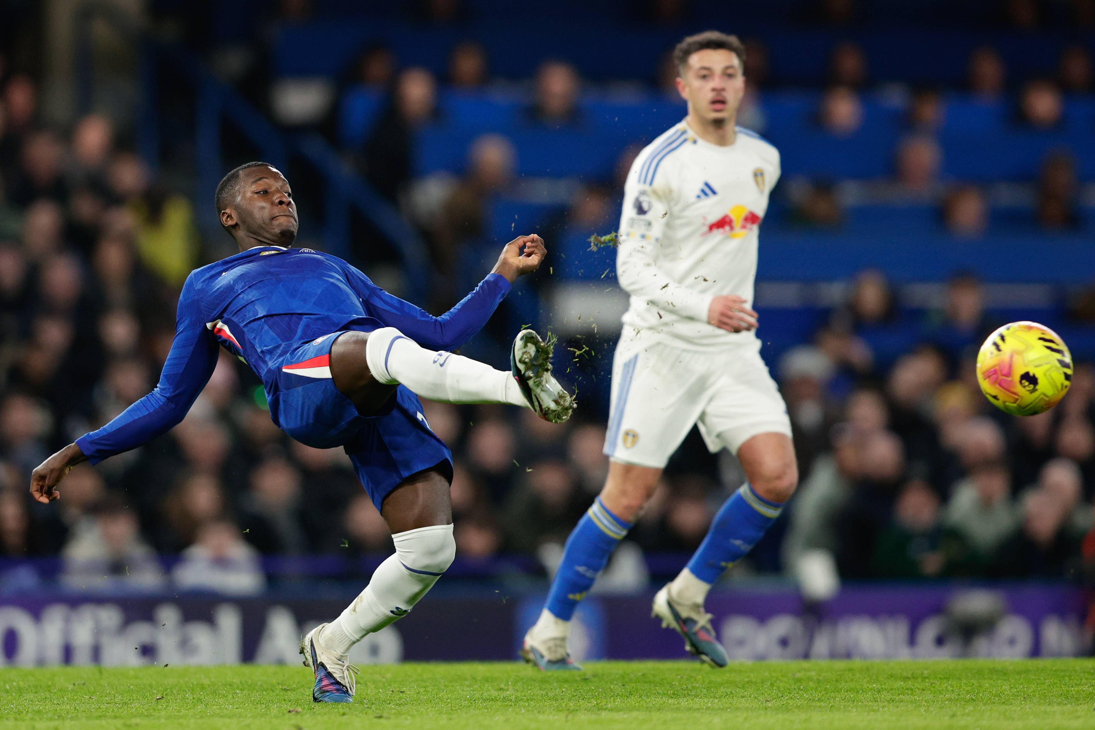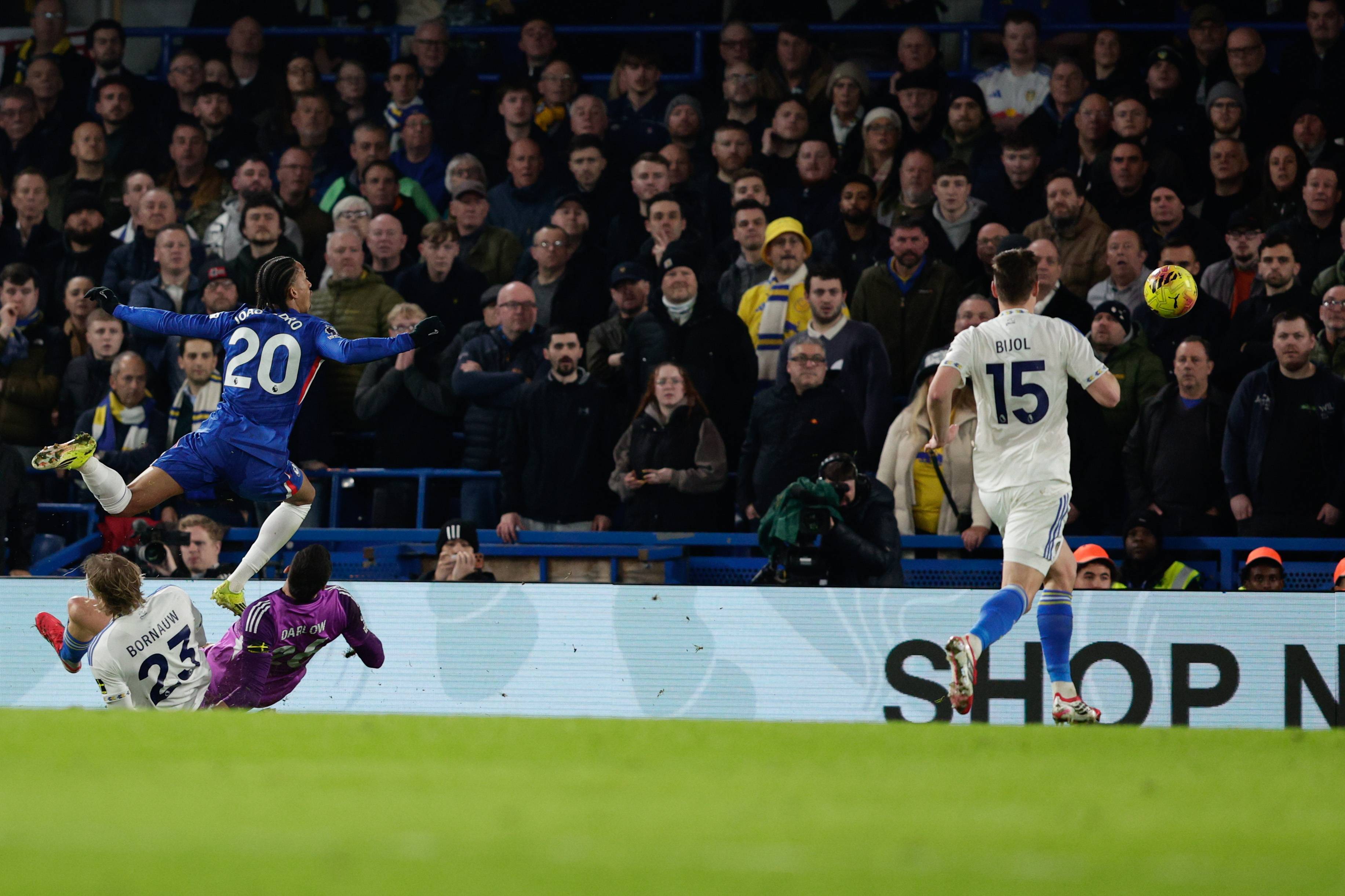 เมื่อวันที่ 10 กุมภาพันธ์ อากังเปา (ซ้าย) ของเชลซีท้าทายอารอนสันของลีดส์ ยูไนเต็ด เพื่อแย่งบอล. ซีเอ็นเอ็น/อีพีเอ