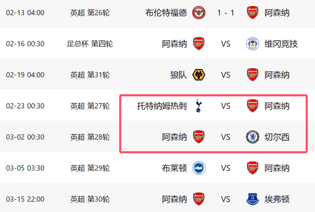 ตามตารางการแข่งขัน อาร์เซนอลจะลงแข่งขันในศึกเอฟเอคัพในสัปดาห์นี้ ตามด้วยการแข่งขันนัดแรกในรอบที่ 31 ในสัปดาห์หน้า ซึ่งพวกเขาจะต้องเดินทางไปเยือนวูล์ฟแฮมป์ตัน วันเดอเรอร์ส หากพวกเขาสามารถทำผลงานได้ตามมาตรฐานที่คุ้นเคย อาร์เซนอลมีโอกาสสูงที่จะเก็บสามแต้มเต็ม อย่างไรก็ตาม ยังมีสองนัดที่ท้าทายรออยู่ข้างหน้าในรอบที่ 27 อาร์เซนอลจะเดินทางไปพบกับท็อตแน่ม ฮ็อตสเปอร์ ก่อนจะกลับมาเล่นในบ้านพบกับเชลซี ภายในระยะเวลาเพียงเจ็ดวัน ปืนใหญ่จะต้องเผชิญกับสองเกมดาร์บี้ติดต่อกัน โดยเฉพาะอย่างยิ่ง สเปอร์สเพิ่งแต่งตั้งผู้จัดการทีมคนใหม่ และแน่นอนว่าจะมุ่งมั่นที่จะเก็บแต้มจากอาร์เซนอลในบ้านสุดสัปดาห์หน้า ซึ่งเป็นภัยคุกคามสำคัญต่อทีมของมิเกล อาร์เตต้าสำหรับเชลซี พวกเขากำลังต่อสู้เพื่อคะแนนในการแข่งขันเพื่อท็อปโฟร์ และจะไม่ทำให้อาร์เซนอลผ่านไปได้โดยง่ายเช่นกัน หากมีการพลาดพลั้งเกิดขึ้นในสองนัดนี้ อาร์เซนอลจะต้องเผชิญกับแรงกดดันอย่างมหาศาล
