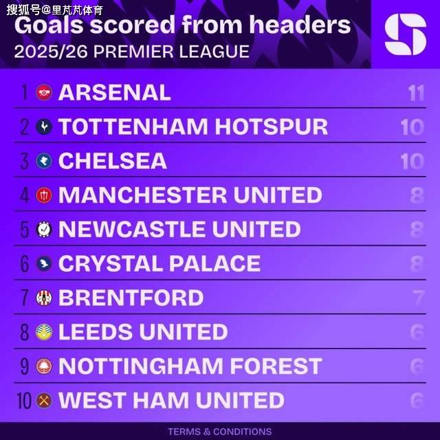เว็บไซต์ข้อมูล Squawka ได้รวบรวมสถิติจำนวนประตูที่ทำได้จากการโหม่งของทุกทีมในพรีเมียร์ลีกฤดูกาลนี้ โดยจัดอันดับอย่างครบถ้วน อาร์เซนอลนำเป็นจ่าฝูงด้วยจำนวน 11 ประตูจากการโหม่ง แสดงให้เห็นถึงความสามารถในการทำประตูจากลูกตั้งเตะที่น่าเกรงขาม ท็อตแน่ม ฮ็อตสเปอร์ และเชลซี อยู่ในอันดับสองร่วมกันด้วยจำนวน 10 ประตูจากการโหม่ง สถิตินี้ยิ่งตอกย้ำความหลากหลายทางแท็คติกของ "ปืนใหญ่" ในการผสมผสานการโจมตีจากเกมรุกกับโอกาสจากลูกตั้งเตะได้อย่างลงตัว