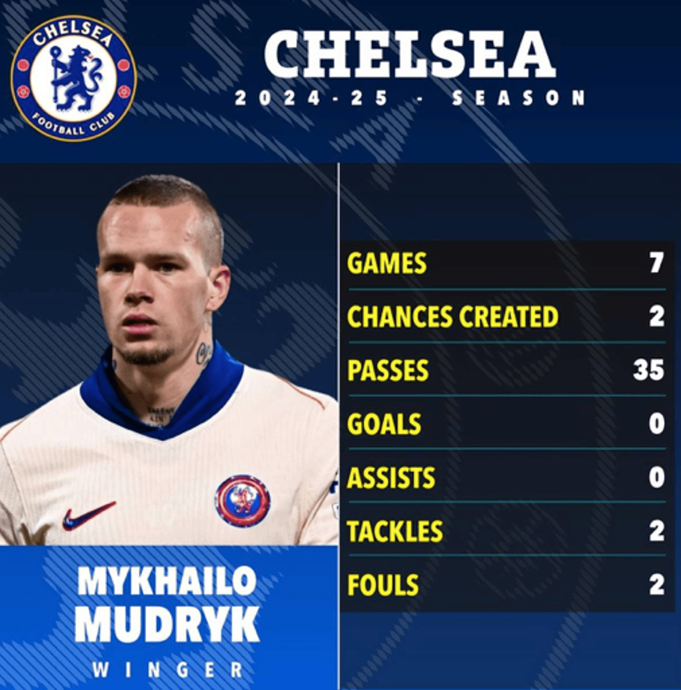 พรีเมียร์ลีกไม่เคยเล่าเรื่องราว มีแต่ส่งมอบผลลัพธ์เท่านั้น ครึ่งทางของฤดูกาล สถิติต่างๆ ยังไม่สามารถตอบสนองความคาดหวังได้ ประตูมีน้อย แอสซิสต์ก็ห่างหาย และการปรากฏตัวของเขาในสนามก็ดูโดดเด่นน้อยกว่าตัวสำรองที่เปลี่ยนเกมได้ ความอดทนแบบ "แค่รออีกสักหน่อย" คือสิ่งล้ำค่าที่สุดที่สแตมฟอร์ด บริดจ์มีอยู่ในตอนนี้