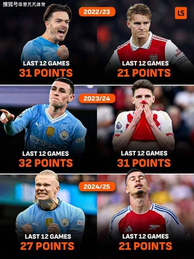 3 - การวิเคราะห์ข้อมูลเปรียบเทียบการแข่งขัน 12 นัดสุดท้ายของสามฤดูกาลที่ผ่านมา: แมนเชสเตอร์ ซิตี้ มีผลงานเหนือกว่าอาร์เซนอลอย่างต่อเนื่อง และแฟนบอลปืนใหญ่ควรระมัดระวัง