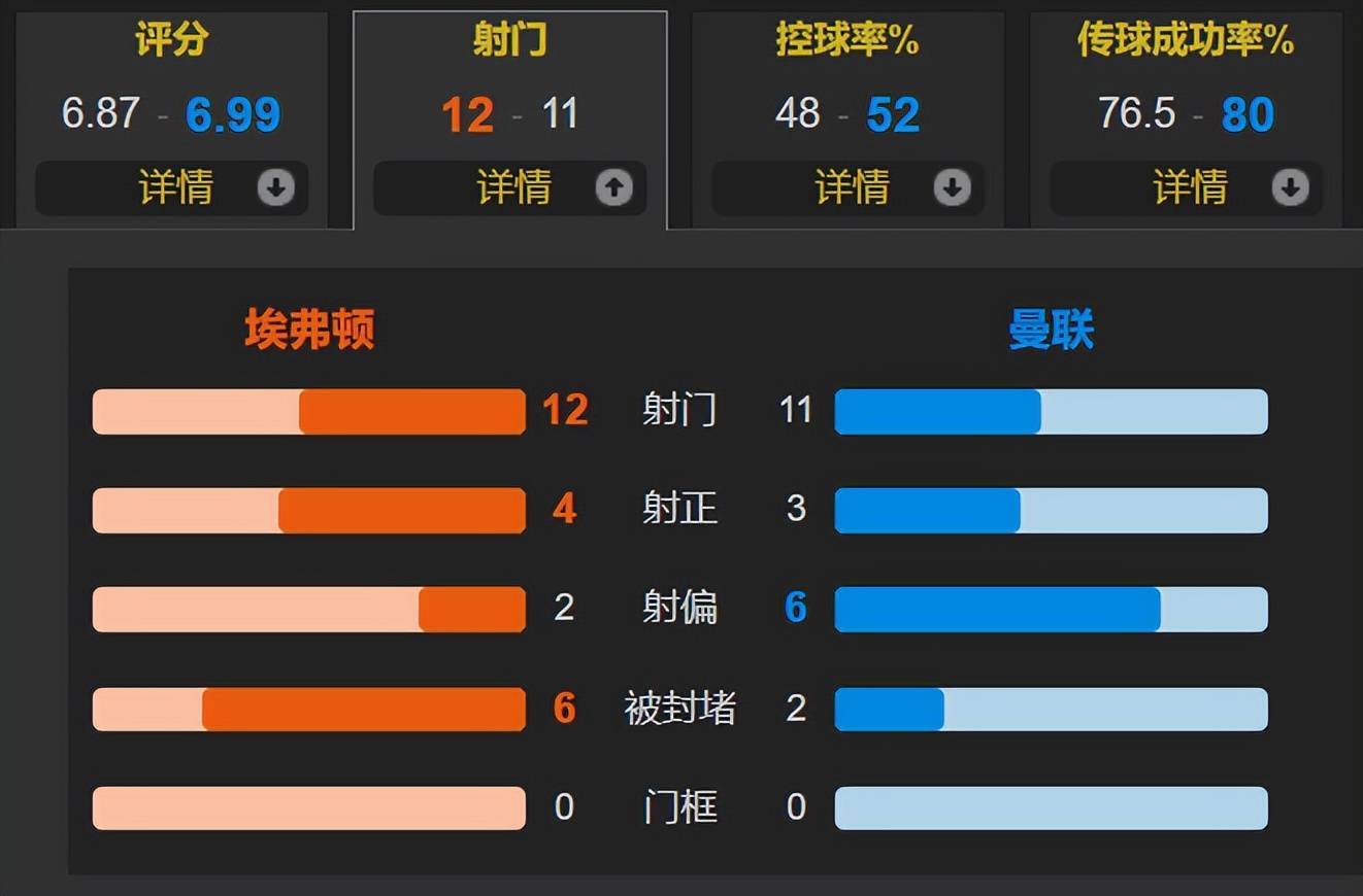ตลอดการแข่งขัน เอฟเวอร์ตันครองบอลได้ 48% ยิงทั้งหมด 12 ครั้ง โดยเข้ากรอบ 4 ครั้ง ส่วนแมนเชสเตอร์ ยูไนเต็ดมีโอกาสยิงเพียง 11 ครั้ง โดยเข้ากรอบ 3 ครั้ง