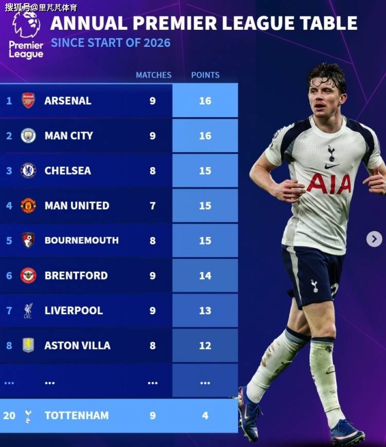 ตารางคะแนนพรีเมียร์ลีกเปรียบเทียบหลังปี 2026: อาร์เซนอลและแมนเชสเตอร์ซิตี้ยังคงนำอยู่ แมนเชสเตอร์ยูไนเต็ดทำผลงานได้อย่างยอดเยี่ยม ลิเวอร์พูล เชลซี