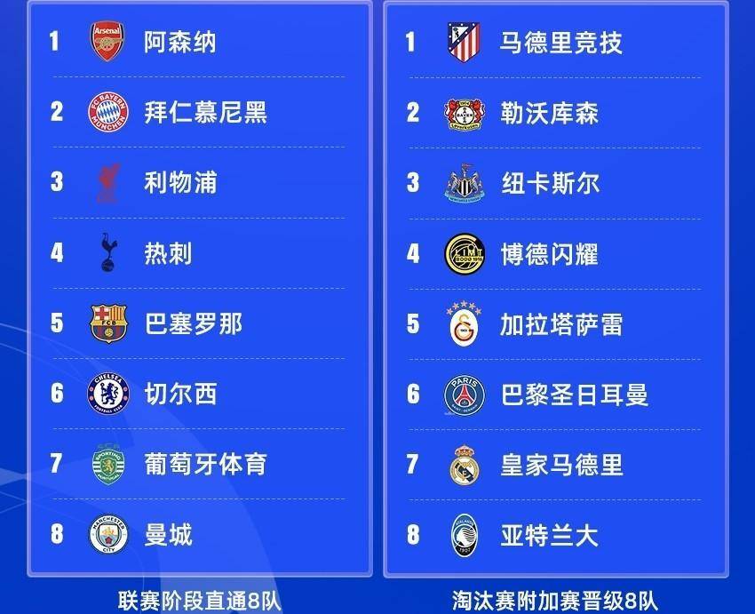 การจับสลากประกบคู่รอบ 16 ทีมสุดท้ายของยูฟ่า แชมเปียนส์ลีก จะจัดขึ้นในเวลา 19:00 น. ตามเวลาปักกิ่ง วันที่ 27 กุมภาพันธ์ อย่างไรก็ตาม การจับสลากครั้งนี้มีกฎใหม่: ทีมที่มีอันดับสูงสุด 8 ทีมสามารถจับสลากพบกับทีมที่ไม่มีอันดับได้เพียง 2 ทีมเท่านั้น ซึ่งถือเป็นข้อได้เปรียบทางปฏิบัติสำหรับทีมที่มีอันดับสูงกว่า – หมายความว่าทีมที่มีอันดับสูงกว่าจะได้ประโยชน์จากการจับสลากในกลุ่มที่ง่ายกว่า