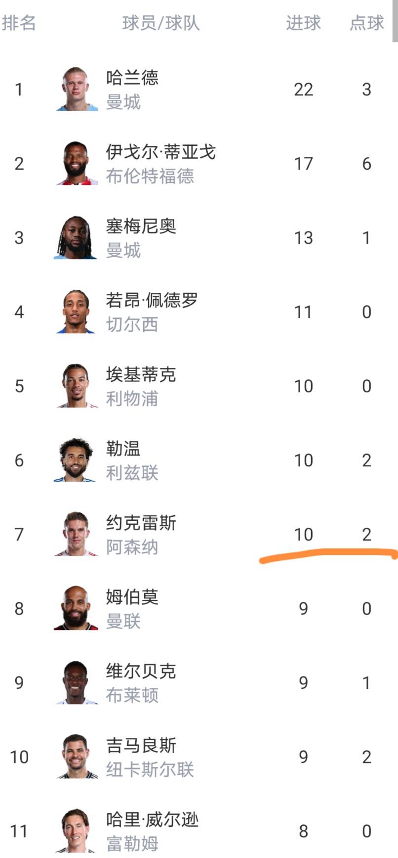 ผู้เล่นเจ็ดคนได้ทำประตูไปแล้วสิบประตูหรือมากกว่าในตารางคะแนน