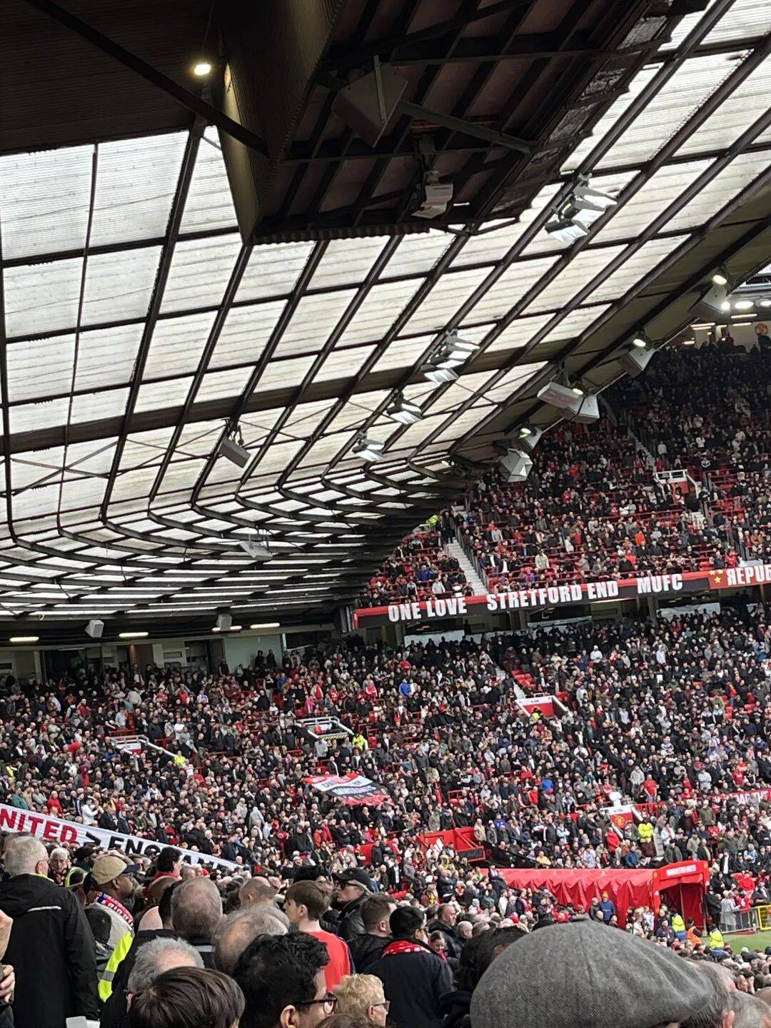 ในช่วงพักครึ่ง แมนเชสเตอร์ ยูไนเต็ด ตามหลังอยู่ 0-1 ขณะที่ไมเคิล คาร์ริค และบรูโน่ แฟร์นันด์ส วิ่งกลับเข้าห้องแต่งตัว โดยมีแฟนบอลชูป้ายประท้วงวิจารณ์เจ้าของสโมสร เซอร์จิม แรตคลิฟฟ์