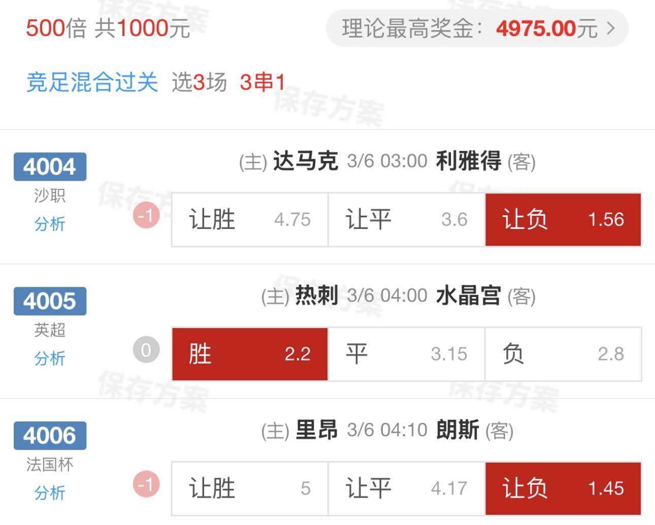 比分参考:2-1 3-1