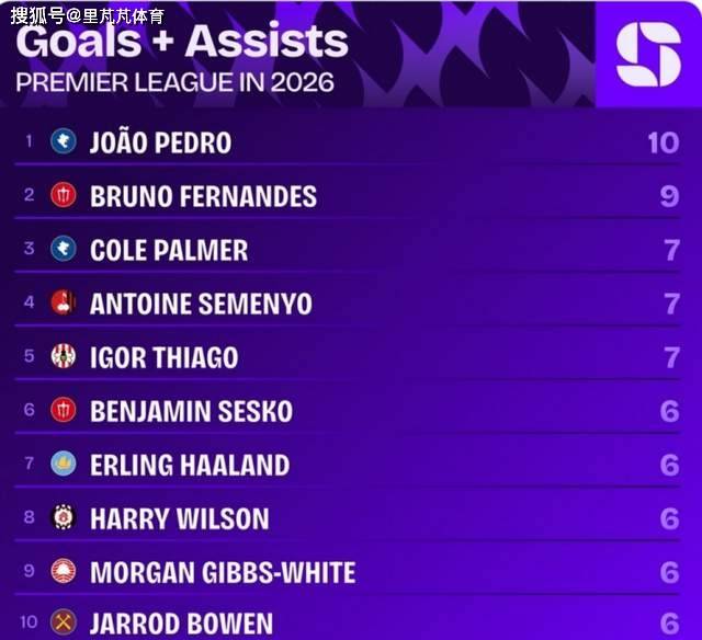 หน่วยงานข้อมูล Squawka นับจำนวนประตูที่เขาเข้าร่วมในพรีเมียร์ลีกตั้งแต่ปี 2026 (ประตู + แอสซิสต์) ในพรีเมียร์ลีก และแสดงรายการ โจอา เปโดร กองหน้าของเชลซี ทำผลงานได้ 10 ประตู และ บรูโน่ เฟอร์นันเดซ กองกลางของแมนเชสเตอร์ ยูไนเต็ด ตามหลังด้วย 9 ประตู ผู้เล่นอันดับสามคือผู้เล่นสองคนคือ Palmer, Chelsea และ Semenio ของ Manchester City ซึ่งทั้งคู่ทำได้ 7 ประตู