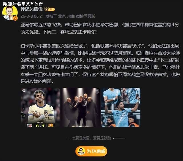 ในรอบชิงชนะเลิศเอฟเอ คัพ 1/8 แมนเชสเตอร์ ซิตี้ เอาชนะนิวคาสเซิ่ล 3-1 และผ่านเข้าสู่รอบรองชนะเลิศเอฟเอ คัพ 8 ฤดูกาลติดต่อกัน มัลมุชยิงได้สองประตูในครึ่งหลังกลายเป็นกุญแจสู่ชัยชนะ ซาน จุน วิจารณ์ ให้ความเห็นว่า นิวคาสเซิ่ล แพ้ แมนเชสเตอร์ ซิตี้ เป็นครั้งที่ 4 ในฤดูกาลนี้ และเขาไม่สามารถเล่นความเร็วและความหลงใหลของแมนเชสเตอร์ ยูไนเต็ด ในช่วงกลางสัปดาห์ กวาร์ดิโอล่าได้ลองแทคติค กองหน้าตัวจริงอีกครั้งในกรณีที่มีการหมุนเวียนครั้งใหญ่ซึ่งทำประตูได้สองประตูจากด้านข้าง และกองหนุนแทคติคก็รวยมาก