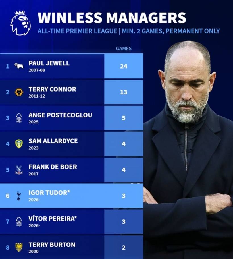 ท็อตแนม ฟรายด์! การเปลี่ยนแปลงการฝึกสอนครั้งที่สองในเดือนมกราคมกำลังใกล้เข้ามา และทิวดอร์มีการสูญเสียติดต่อกันสามครั้งในสถานการณ์ที่สิ้นหวัง!_ พรีเมียร์ลีก_ตารางเวลา_ความผิดพลาด