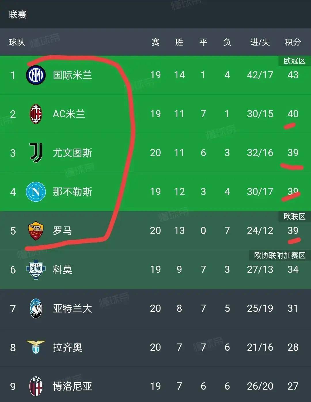 สถานการณ์ของเซเรีย อา ยูฟ่า แชมเปี้ยนส์ ลีก ผ่านพ้นไปแล้ว จากตำแหน่งที่ 4 โคโม่ (51 คะแนน) สู่อันดับที่ 7 แอตแลนต้า (45 คะแนน) ช่องว่าง 6 คะแนน หมายความว่าแต่ละรอบอาจเปลี่ยนอันดับได้โดยตรง ยูเวนตุส โรม โคโม และแอตแลนต้าเป็นกลุ่มการแข่งขันที่จำกัดกันและกัน และชัยชนะครั้งใหญ่ของยูเวนตุสก็ใส่ตัวแปรใหม่เข้ามาในระยะประชิดนี้อย่างไม่ต้องสงสัย