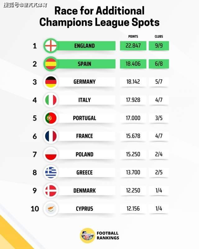 รอบแรกของ European Wars 1/8 Finals สิ้นสุดลงแล้ว แม้ว่าพรีเมียร์ลีกจะชนะเพียง 1 เกม แต่คะแนนยุโรปยังคงทำคะแนนได้ 22 คะแนน 847 คะแนนนำมาร์จิ้นขนาดใหญ่ สเปนถึง 18 406 คะแนนเป็นอันดับสองเพียง 0.264 คะแนนนำหน้าประเทศเยอรมนี การแข่งขันชิงแชมป์ยุโรปสะท้อนให้เห็นถึงผลงานโดยรวมของลีกในเวทียุโรป