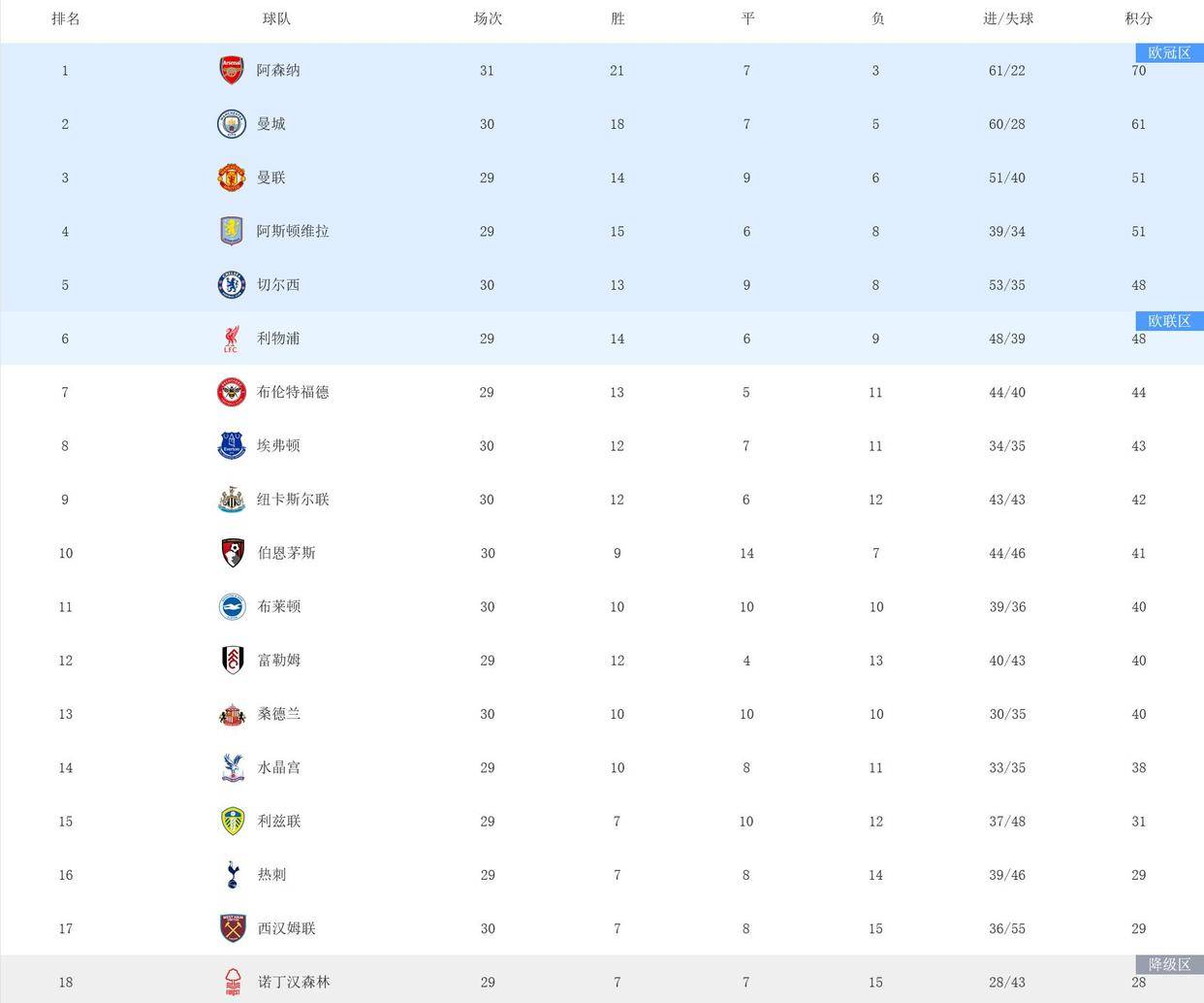 สถานการณ์โดยรวมถูกกำหนดหรือไม่? ในช่วงเช้าของวันที่ 15 มีนาคม ตามเวลาปักกิ่ง รอบที่ 30 ของพรีเมียร์ลีกลงเล่นอีกสองสามเกม กุญแจพิเศษสองดอก: อาร์เซนอลชนะเอฟเวอร์ตัน 2-0, แมนเชสเตอร์ซิตี้เสมอ 1-1 กับเวสต์แฮมยูไนเต็ดและคราวนี้แมนเชสเตอร์ซิตี้กลับอารมณ์เสียอีกครั้ง หลังจากสองเกมนี้ อาร์เซนอล ได้นำ 9 แต้มแล้ว และลีกกำลังจะเข้าสู่รอบสุดท้าย อาจกล่าวได้ว่าแชมป์พรีเมียร์ลีกในฤดูกาลนี้โดยพื้นฐานแล้วมีเสถียรภาพ และอาร์เซนอลได้เข้าสู่การนับถอยหลังเพื่อคว้าแชมป์