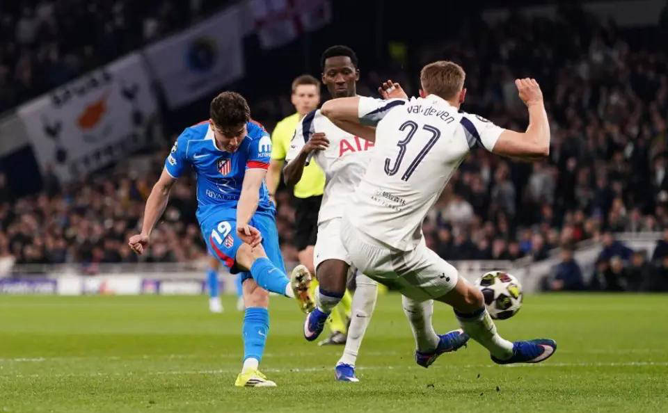 ในเกมนี้แม้ว่าพวกเขาจะตามหลังในรอบแรก แต่ท็อตแนมยังคงต่อสู้กับผู้เล่นตัวจริงหลัก ในนาทีที่ 30 เทลทำแต้มได้แม่นยำ และมูอานียิงโหม่งโดยไม่มีใครทำเครื่องหมาย และขึ้นนำให้ท็อตแนม ในนาทีที่ 47 ของครึ่งหลัง ลัคแมนโต้กลับในการโต้กลับในการโต้กลับ อัลวาเรซหันหลังกลับและยิง และแอตเลติโกทำคะแนนให้เท่ากัน เพียงห้านาทีต่อมา ฮาร์วีย์ ซิมมอนส์ยิงอย่างชาญฉลาดเพื่อช่วยท็อตแนมขึ้นนำอีกครั้ง จากนั้นอัลวาเรซก็เตะมุมและยิงโหม่งให้แอตเลติโกมาดริดอีกครั้ง ในเกมหยุดเวลาหยุด ฮาร์วีย์ ซิมมอนส์ เตะลูกโทษและยิงจุดโทษด้วยตัวเขาเอง และในที่สุดก็ผนึกชัยชนะ 3-2 แม้จะชนะการต่อสู้ครั้งสำคัญนี้ แต่คะแนนรวมก็ยัง 5-7 อย่างเสียใจอำลาแชมเปี้ยนส์ลีก