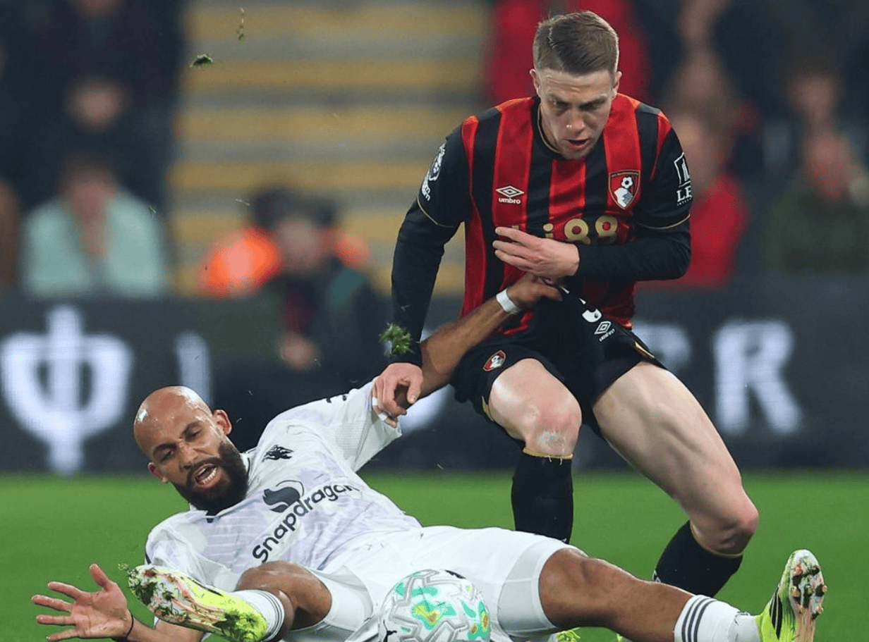 ในพรีเมียร์ลีก แมนเชสเตอร์ ยูไนเต็ด พลิกคว่ำและถูกบอร์นมัธดึงตัว ทั้งสองฝ่ายล้มเหลวในการทำประตูในครึ่งแรกของเกมนี้ และพวกเขาไม่ปรากฏตัวทีละคนในครึ่งหลัง บรูโน่ เฟอร์นันเดซ อาศัยจุดโทษเพื่อช่วยให้แมนเชสเตอร์ ยูไนเต็ด ขึ้นนำ แต่ในไม่ช้าคริสตี้ก็ยิงได้ต่ำและทำให้คะแนนเท่ากัน จากนั้นฮิลล์ก็มอบของขวัญให้ลูกอู่หลงให้แมนเชสเตอร์ยูไนเต็ดขึ้นนำอีกครั้ง ในนาทีที่ 80 แมกไกวร์ย้อมสีแดงและส่งคะแนน ครูปิถูกตี จบการจับฉลากที่สมบูรณ์แบบและช่วยบอร์นมัธ สุดท้ายแมนฯยูต้องยอมรับตอนจบ 2-2 แมนเชสเตอร์ ยูไนเต็ด มีทั้งหมด 55 แต้ม อันดับสาม ตามหลังแมนเชสเตอร์ ซิตี้ 6 แต้ม และนำหน้าแอสตัน วิลล่า 4 แต้ม