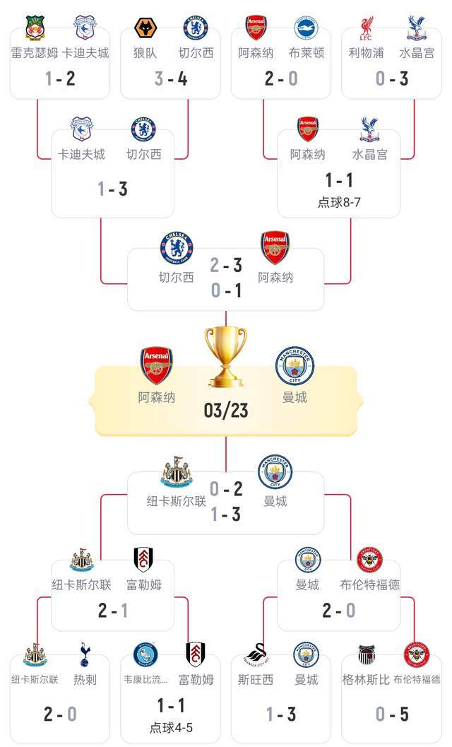 แชมเปี้ยนส์ลีกของแมนเชสเตอร์ ซิตี้ ได้รับบาดเจ็บเล็กน้อยจากเรอัล มาดริด แชมเปี้ยนส์ลีก 1/8 รอบชิงชนะเลิศได้กินอาร์เซนอลที่เล็กกว่าในสองรอบของแชมเปี้ยนส์ลีก แต่อาร์เซนอลแพ้ 6 สมัยในลีกคัพรอบชิงชนะเลิศ 8 ครั้งก่อนหน้านี้มากกว่าทีมใด ๆ