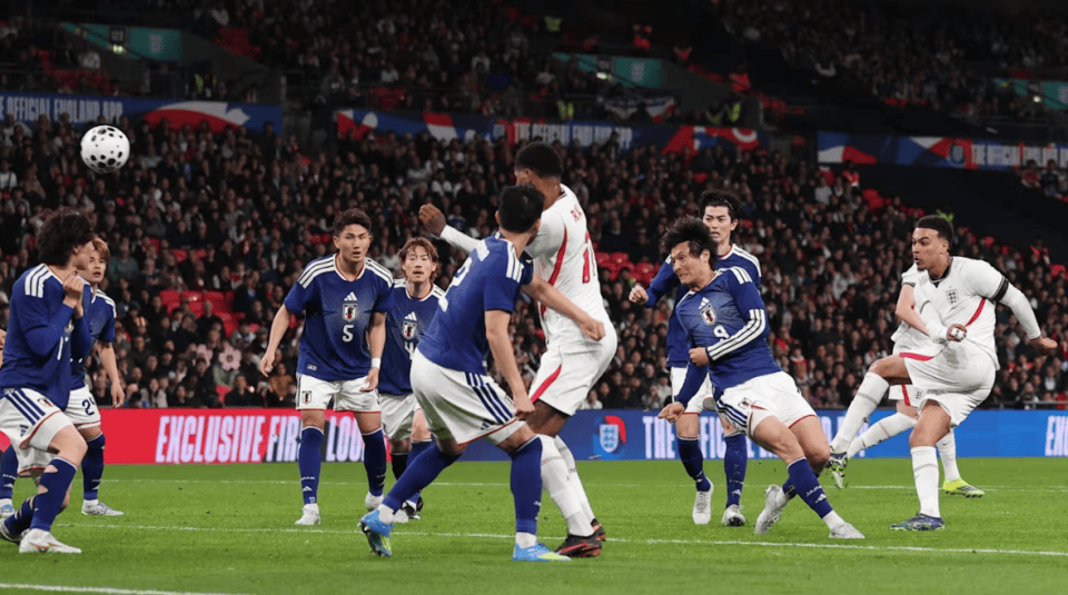 ในนาทีที่ 23 ของเกม ทีมญี่ปุ่นคว้าโอกาสที่จะขึ้นนำ พาลเมอร์ กองกลางทีมชาติอังกฤษ ยอมรับบอลในตำแหน่งกองกลาง ญี่ปุ่นยิงโต้กลับอย่างรวดเร็ว ซานโต้วของนากามูระส่งบอล และซานบัซซุนทำประตูได้ และในขณะเดียวกันก็จบสถิติผู้รักษาประตูพิคฟอร์ดตั้งแต่เดือนตุลาคม 2024