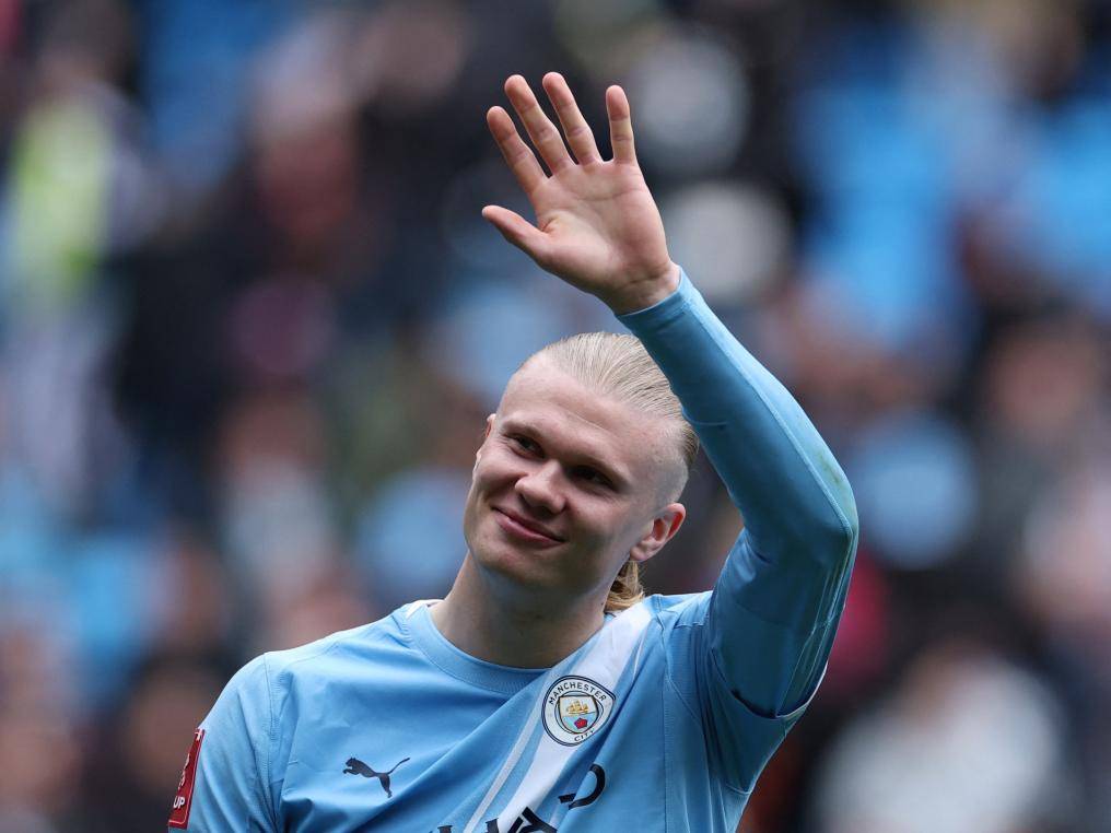 ผู้เล่นแมนเชสเตอร์ ซิตี้ ฮาร์แลนด์ ทักทายผู้ชมหลังเกม ซินหัว/รอยเตอร์