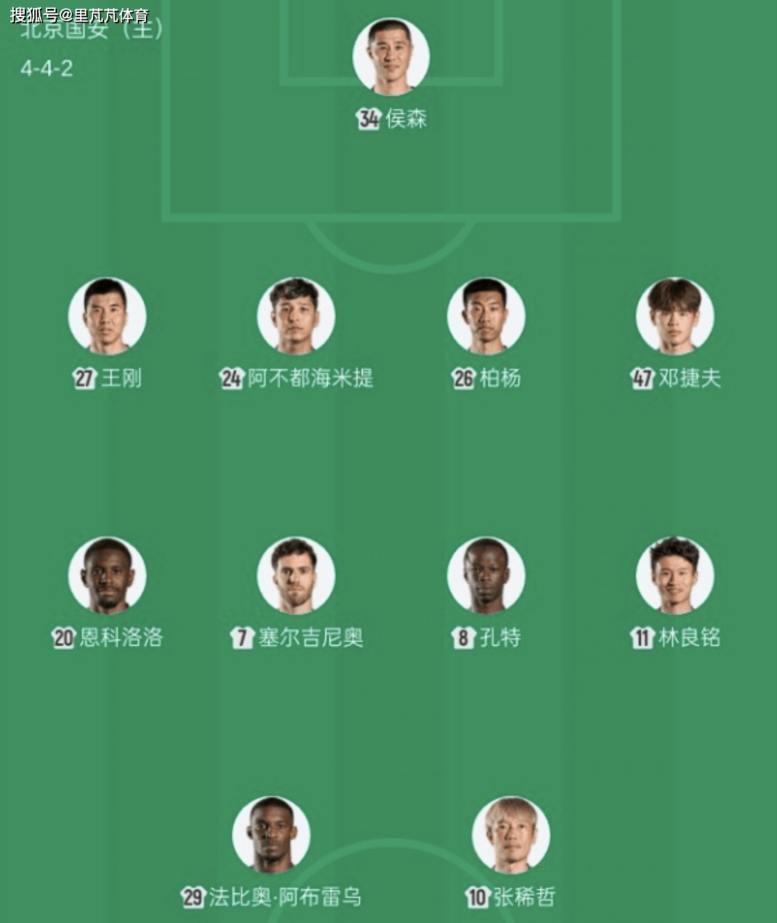 Beijing Guoan เปิดตัวครั้งแรก: 34-Housen, 24-Abdulheimi Abdulgni, 26-Boyang, 27-Wang Gang, 47-Dengjefu, 7-Serginio, 8-Conte (F), 10-Zhang Xizhe, 20-Nkolo (F), 11-Lin Liangming, 29-FaBio (F)