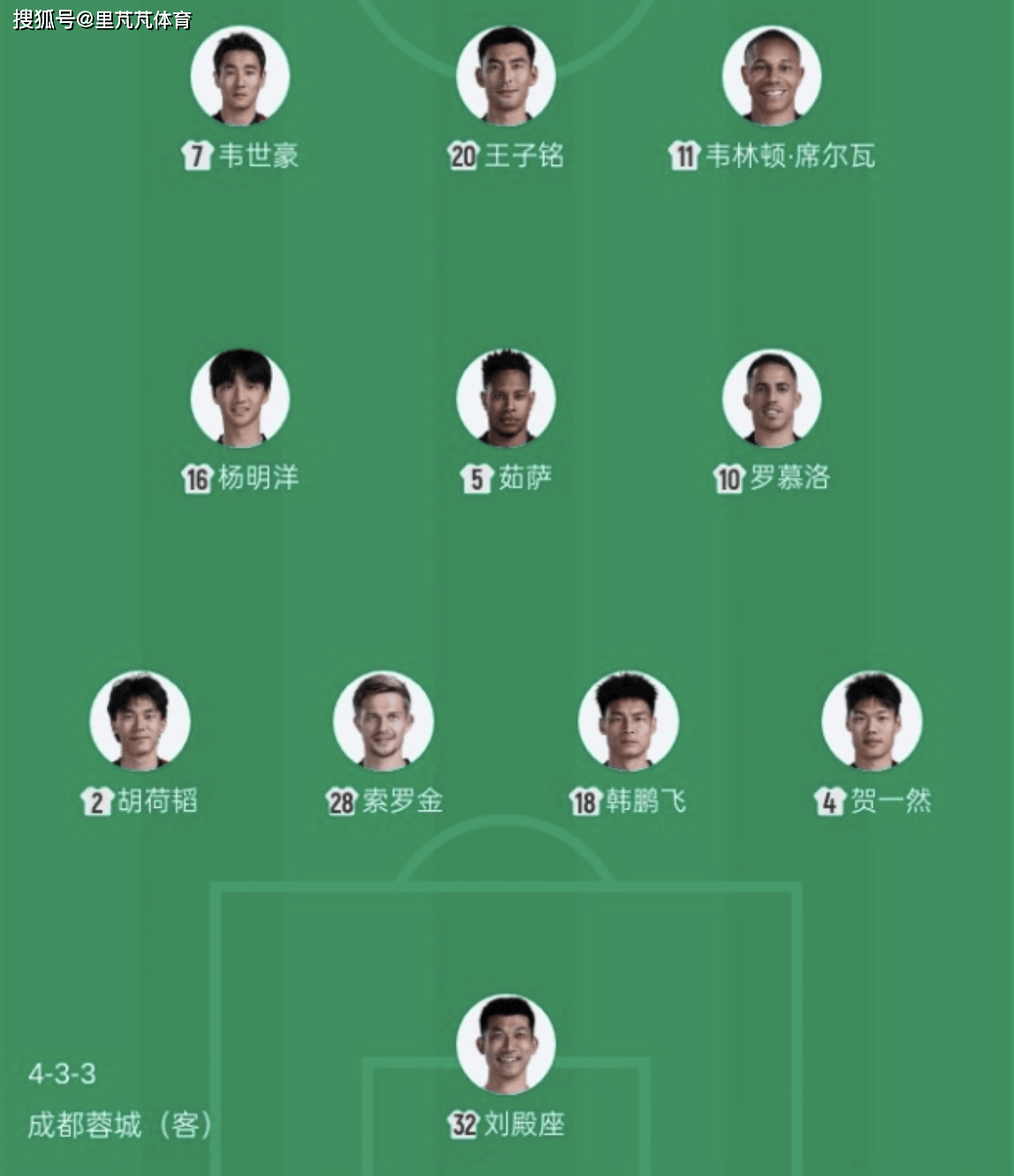 เฉิงตูหงเฉิงเริ่มต้น: 32-Liu Dianzuo, 2-hu hetao, 4-he yiran, 18-han pengfei, 28-Sorokin (f), 5-maxius josa (f), 10-romulo (f), 16-yang Mingyang, 7-wei shihao, 11-wellington Silva (F), 20-Wang Ziming