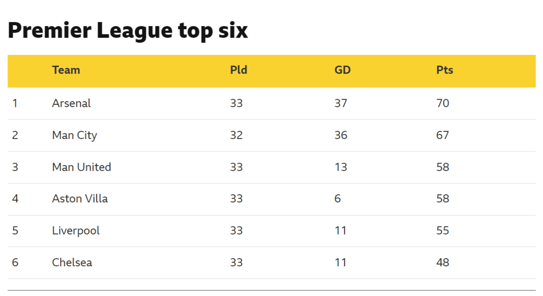 อาร์เซนอลและแมนเชสเตอร์ ซิตี้ ได้อันดับ 5 อันดับแรกแล้ว โดยแมนเชสเตอร์ ยูไนเต็ด, วิลล่า และลิเวอร์พูล คว้าตำแหน่งอื่นๆ ออกไปอีก 3 แห่ง และอังกฤษจะยังคงมีทีมแชมเปี้ยนส์ลีกอย่างน้อย 5 ทีมในฤดูกาลหน้า