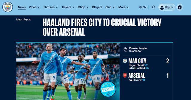 ในช่วงเช้าของวันที่ 20 เมษายน ตามเวลาปักกิ่ง ในรอบที่ 33 ของพรีเมียร์ลีก ฤดูกาลนี้ ได้จัดฉากเกมแรก ทีมแมนเชสเตอร์ซิตี้อันดับสองเอาชนะอาร์เซนอล 2-1 ที่บ้านและมีเพียง 3 แต้มตามหลังคู่ต่อสู้ของพวกเขาด้วยเกมที่น้อยกว่าหนึ่งเกม