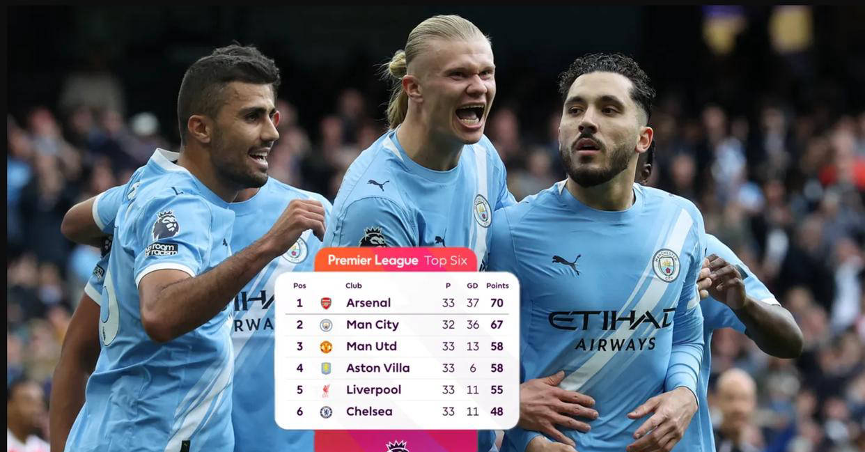ในอันดับพรีเมียร์ลีก อาร์เซนอล ชนะ 21 เสมอ 7 เสมอ 5 แพ้ 5 หลัง 33 นัด รั้งอันดับ 1 ด้วยคะแนน 70 ประตู 63 ประตู และเสียไปเพียง 26 ประตู ผลต่างประตู 37 ประตู ในฐานะที่เป็นขุมพลังสำหรับการต่อสู้แบบสองแนว อาร์เซนอลไม่เพียงแต่เป็นผู้นำลีกในประเทศเท่านั้น แต่ยังเข้าสู่รอบรองชนะเลิศของแชมเปี้ยนส์ลีกได้สำเร็จอีกด้วย รอบรองชนะเลิศจะพบกับโรงไฟฟ้าเก่า Atletico Madrid และทั้งสองแนวหน้ายังคงมีความหวังที่จะรีบคว้าแชมป์ ในทางตรงกันข้าม แมนเชสเตอร์ ซิตี้ ลงเล่น 32 นัด ด้วยสถิติชนะ 20 ครั้ง เสมอ 7 แพ้ 5 แต้ม ตามด้วย 67 แต้ม ยิงได้ 65 ประตู และเสีย 29 ประตู และ 36 ประตูต้องผ่าน ปัจจุบัน แมนเชสเตอร์ ซิตี้ ยังอยู่ในสถานะการต่อสู้แบบหลายแนว เอฟเอ คัพ ผ่านเข้ารอบรองชนะเลิศแล้ว และจะพบกับเซาแธมป์ตัน