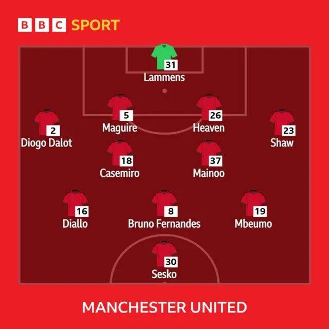 คาร์ริคได้ปรับสองรายการให้กับผู้เล่นตัวจริง แมกไกวร์ซึ่งกลับมาจากการแบนและกลับมา แทนที่มาซลาวี และเล่นกับเอเดน ฮาวานเพื่อเล่นกองหลังตัวกลาง Amad Diallo แทนที่ Kunia ที่ได้รับบาดเจ็บและหายไป และปรากฏตัวในตำแหน่งปีกซ้ายที่ 4231