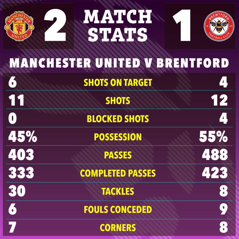 ในนาทีที่ 88 ของเกม Matthias Jensen ของ Brentford ยิงนางฟ้าโดยลดช่องว่างคะแนนให้เหลือ 1-2 แต่มันสายเกินไป และในที่สุด แมนเชสเตอร์ ยูไนเต็ด ก็ได้เปรียบบอลหนึ่งลูกโดยไม่มีความเสี่ยง และเก็บ 3 แต้มในบ้านได้ อย่างไรก็ตาม บีเฟยและลุค เซี่ยวได้รับบาดเจ็บในช่วงครึ่งหลัง ซึ่งไอรอนแมนชาวโปรตุเกสยืนกรานที่จะเล่นเป็นผู้ชม แต่อ้วนเซียวได้รับบาดเจ็บ