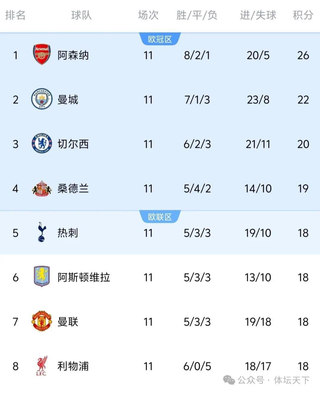ในฤดูกาลนี้ แมนเชสเตอร์ ยูไนเต็ด และ ท็อตแนม ฮ็อตสเปอร์ ได้เริ่มฟื้นตัวขึ้นมาอย่างค่อยเป็นค่อยไป หลังจากผ่านไป 11 นัดในพรีเมียร์ลีก ยูไนเต็ด อยู่ในอันดับที่ 7 และ สเปอร์ส อยู่ในอันดับที่ 5 โดยทุกสโมสรที่เป็นทีมใหญ่ดั้งเดิมของลีกอยู่ในอันดับ 8 อันดับแรกในตอนนี้ สองทีมอื่น ๆ ที่อยู่ในอันดับ 8 อันดับแรกคือ ซันเดอร์แลนด์ และ แอสตัน วิลล่า ขณะที่ทีมที่สร้างความประหลาดใจในฤดูกาลที่แล้วอย่าง บอร์นมัธ ได้หลุดออกจากอันดับ 8 อันดับแรกแล้ว หลังจากแพ้ติดต่อกันสองนัด