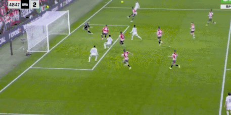 ในนาทีที่ 42 เรอัล มาดริด ขยายสกอร์นำเป็นสองเท่า เบลลิงแฮมจ่ายบอลเฉียงจากริมกรอบเขตโทษ วัลแวร์เดปล่อยบอลผ่านอย่างชาญฉลาด และอาร์โนลด์วิ่งขึ้นทางฝั่งขวาก่อนเปิดบอลเข้ากลาง มบัปเป้แตะบอลเปลี่ยนทางที่เสาแรก และกามาวินก้าวิ่งเข้ามาแตะบอลเข้าประตูไปอย่างง่ายดาย – 2-0!