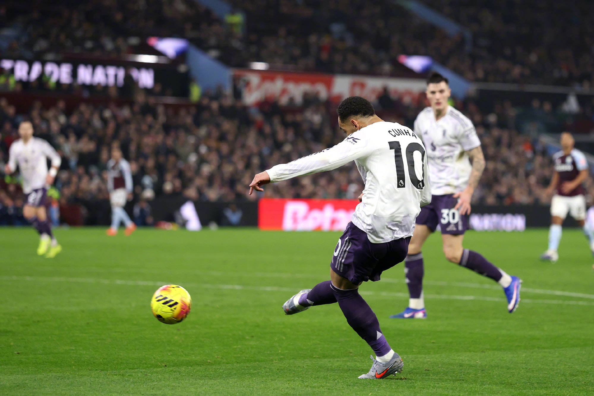 ตามหลังในสกอร์ แมนเชสเตอร์ ยูไนเต็ด เปิดฉากการกลับมาอย่างบ้าคลั่ง อย่างไรก็ตาม การขาดหายไปของกองหน้าคนสำคัญอย่าง มอมโบโม และ ดิอาลโล ประกอบกับการบาดเจ็บของกัปตันทีม บรูโน เฟอร์นันเดส ที่ต้องออกจากสนามตั้งแต่ต้นเกม ทำให้พวกเขาไม่สามารถสร้างโอกาสทำประตูที่ชัดเจนได้เลย ในที่สุด แอสตัน วิลลา ก็คว้าชัยชนะอย่างหวุดหวิด 2-1 ที่บ้าน ทำให้พวกเขาขยายสถิติชนะติดต่อกันเป็น 10 นัดในทุกการแข่งขัน พวกเขายังคงตามหลังแมนเชสเตอร์ ซิตี้ และอาร์เซนอลในตารางคะแนนลีก