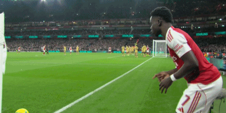 ซาก้าเปิดลูกเตะมุม ส่งผลให้เกิดการแย่งชิงในกรอบเขตโทษ ซึ่งลาครัวซ์ของคริสตัล พาเลซเผลอเปลี่ยนบอลเข้าประตูตัวเอง อาร์เซนอลขึ้นนำ 1-0 อย่างน่าตื่นเต้น