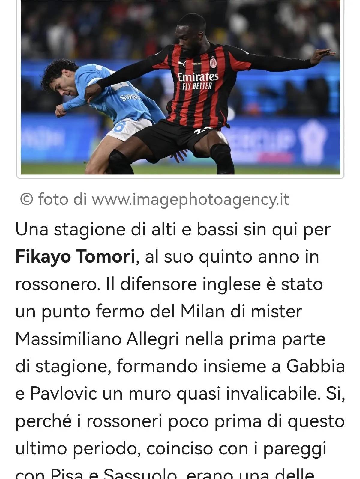 สื่ออิตาลีฮือฮากัน: โทโมรีทำผลงานได้อย่างน่าชื่นชมในตำแหน่งเซ็นเตอร์แบ็คขวาในฤดูกาลนี้ และตอนนี้กลายเป็นผู้เล่นตัวจริงที่ไม่มีใครโต้แย้งของเอซี มิลานแล้ว