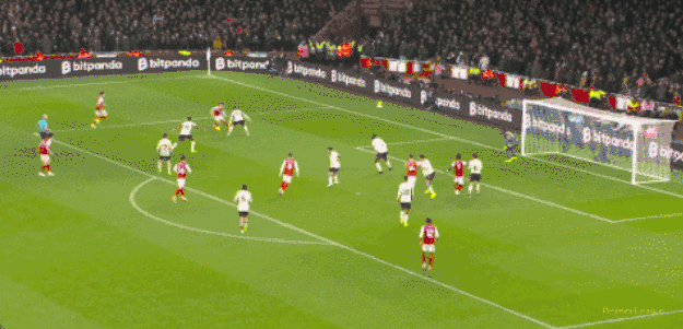 ในนาทีที่ 44 การครอสของอาร์เซนอลถูกเคลียร์ออกไป และลูกยิงของไรซ์จากขอบเขตโทษถูกผู้รักษาประตูอลิสซอนรับไว้ได้ ครึ่งแรกจบลงด้วยสกอร์เสมอ 0-0
