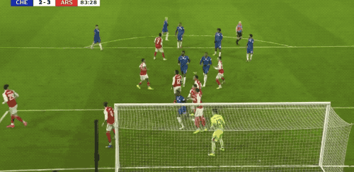 ในนาทีที่ 84 เนโต้ของเชลซีเตะมุม บอลชุลมุนหน้าประตูอาร์เซนอลเมื่อเกป้าพุ่งออกมาและล้มลง การ์นา-ชูวอลเลย์เข้าประตูไป ทำประตูที่สองของเขาในเกมนี้ 2-3