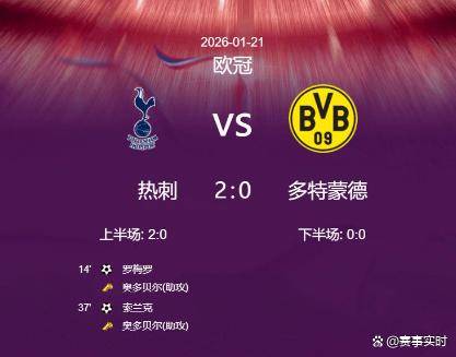 เวลา 04:00 น. ตรงตามเวลาปักกิ่ง วันที่ 21 มกราคม 2026 การแข่งขันรอบที่เจ็ดของรอบแบ่งกลุ่มยูฟ่าแชมเปียนส์ลีก ฤดูกาล 2025-26 ได้เริ่มต้นขึ้นที่สนามใหม่ของท็อตแน่ม ฮ็อตสเปอร์ สเตเดียม เจ้าบ้านท็อตแน่ม ฮ็อตสเปอร์ กำลังเผชิญกับช่วงเวลาที่ยากลำบากก่อนการแข่งขันนี้ โดยพวกเขาชนะเพียงหนึ่งนัดจากหกนัดล่าสุดในทุกรายการ ซึ่งฟอร์มการเล่นของพวกเขาเป็นที่น่ากังวลในทางตรงกันข้าม ทีมเยือนโบรุสเซีย ดอร์ทมุนด์เข้าสู่การแข่งขันโดยอยู่ในอันดับที่สองของบุนเดสลีกา โดยไม่แพ้ใครในหกนัดล่าสุดและแสดงให้เห็นถึงแรงผลักดันที่แข็งแกร่งกว่ามาก แม้ว่าท็อตแน่มจะมีความได้เปรียบทางจิตวิทยาในการพบกันครั้งก่อน โดยชนะทั้งสี่นัดที่ผ่านมา แต่ความแตกต่างของฟอร์มการเล่นในปัจจุบันระหว่างทั้งสองทีมทำให้แฟนบอลหลายคนเลือกเชียร์ดอร์ทมุนด์เพื่อ "ล้างแค้น" ในนัดนี้