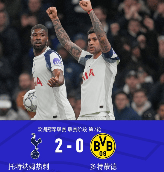 ตามรายงานจากมิลาน สปอร์ตส์ นิวส์ ในรอบที่เจ็ดของกลุ่มแชมเปียนส์ลีก ท็อตแนม ฮ็อตสเปอร์ เป็นเจ้าบ้านรับการมาเยือนของโบรุสเซีย ดอร์ทมุนด์ การแข่งขันถูกตัดสินอย่างมีประสิทธิภาพในครึ่งแรก โดยโรเมโร่และโซลันเก้ทำประตูให้ทีมชนะ 2-0 และเก็บสามคะแนนสำคัญไว้ได้การแข่งขันนัดนี้กองหลังของโบรุสเซีย ดอร์ทมุนด์ สเวนสัน แดเนียล ถูกไล่ออกจากสนามด้วยใบแดงตั้งแต่ต้นเกม ทำให้ทีมเยือนต้องเล่นน้อยกว่าหนึ่งคนและทำให้การแข่งขันเสียสมดุล ท็อตแน่ม ฮ็อตสเปอร์ ควบคุมเกมได้อย่างรวดเร็วตั้งแต่เริ่ม โดยครองเกมผ่านการเล่นการส่งบอลที่แม่นยำและการโต้กลับที่รวดเร็ว