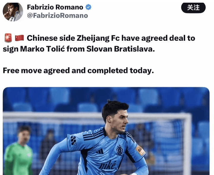ตั้งแต่เช้าวันนี้ โทลิชได้กล่าวคำอำลาผ่านช่องทางโซเชียลมีเดียอย่างเป็นทางการของสโมสรสโลวาน บราติสลาวา ในเวลาเดียวกัน Transfermarkt ได้อัปเดตกิจกรรมล่าสุด ยืนยันว่าโทลิช กองกลางของสโลวาน บราติสลาวา ได้เข้าร่วมทีมเจ้อเจียง เอฟซีในความเป็นจริง หลายวันก่อน สื่อมวลชนทั้งในประเทศและต่างประเทศหลายแห่งได้รายงานซ้ำแล้วซ้ำเล่าว่า โทลิค กองกลางของบราติสลาวา และนักเตะระดับแชมเปียนส์ลีก จะย้ายไปร่วมทีมเจ้อเจียงในลีกสูงสุดของจีน อย่างไรก็ตาม ข่าวลือเหล่านี้ยังคงเป็นเพียงข่าวลือเท่านั้น โดยไม่มีการคืบหน้าที่เป็นรูปธรรมแต่อย่างใด สิ่งที่น่าประหลาดใจในตอนนี้คือ นักข่าวชื่อดังจากยุโรปอย่าง ฟาบริซิโอ โรมาโน่ ได้ออกมาเปิดเผยเรื่องนี้ด้วยตัวเอง