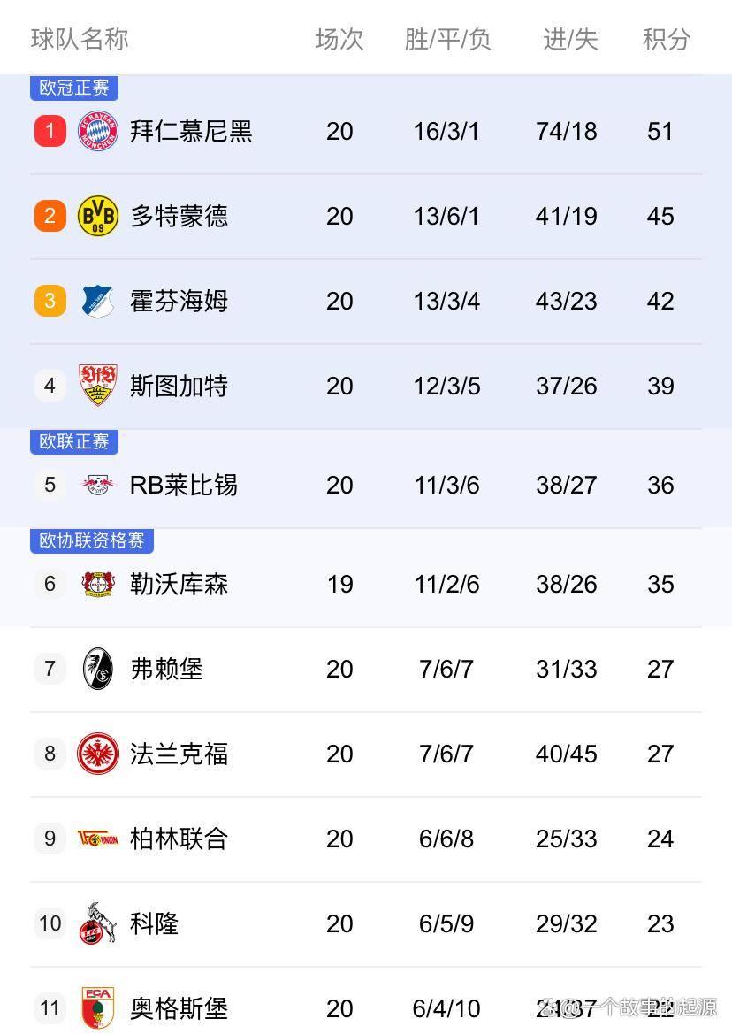 ฮอฟเฟ่นไฮม์ ทีมที่น่าประหลาดใจที่สุดในฤดูกาลนี้ อยู่ในอันดับที่สามด้วยคะแนน 42 คะแนน จากการชนะ 13 นัด เสมอ 3 นัด และแพ้ 4 นัด ตามหลังบาเยิร์น มิวนิค ทีมจ่าฝูงอยู่ 9 คะแนน ขณะที่ดอร์ทมุนด์นำอยู่เพียง 3 คะแนน
