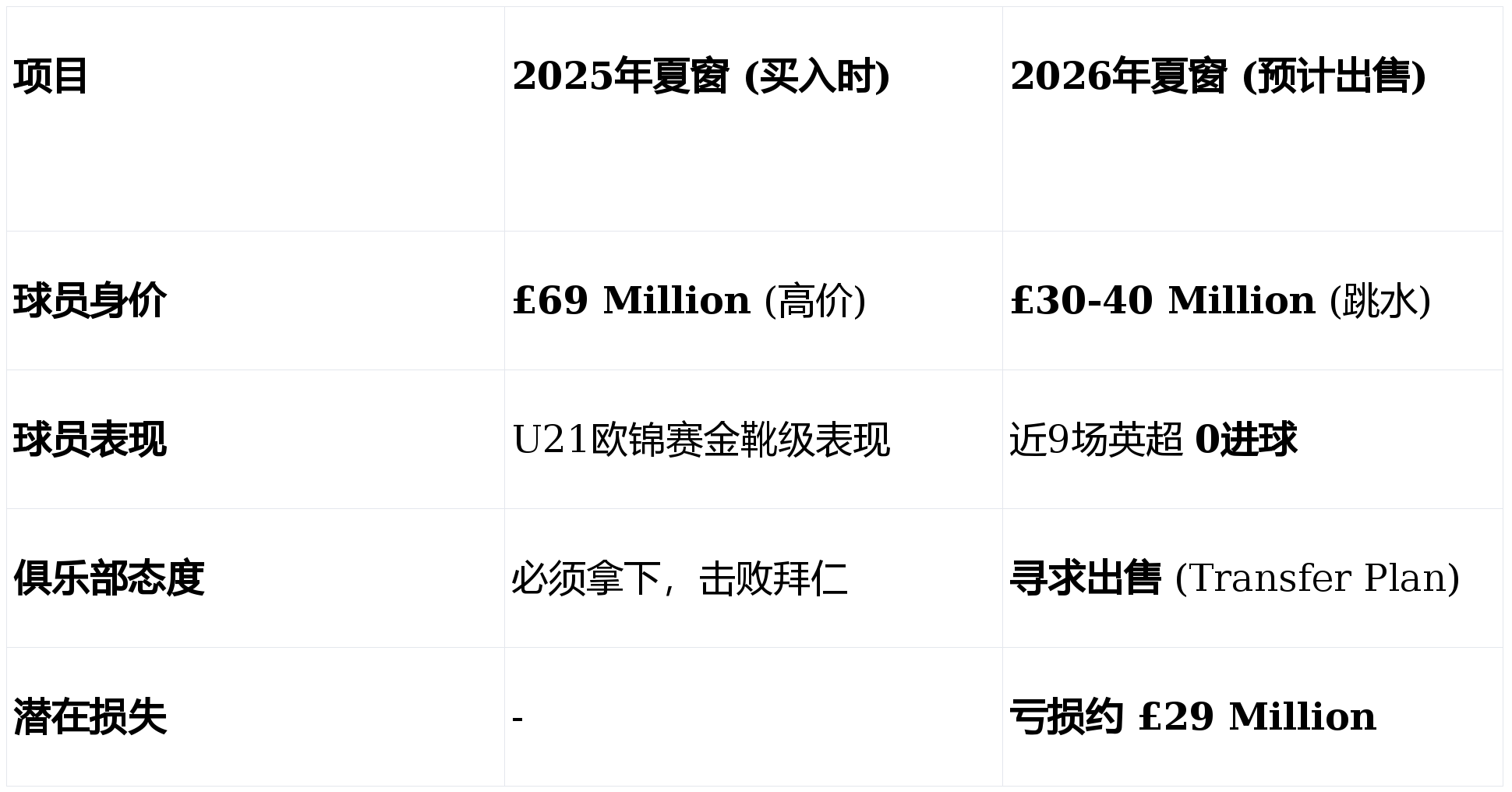 - 谈判局势:纽卡斯尔高层已决定“寻求出售”,这意味着只要报价合适(约4000万镑),这笔交易就可能达成。